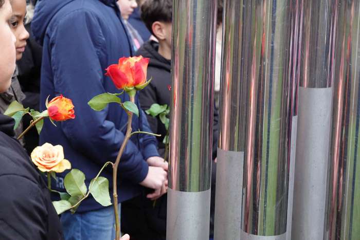 Na een bloemlegging door alle kinderen vertrokken de kinderen in stilte. Zij kennen nu de betekenis van het monument en vertellen het verder.